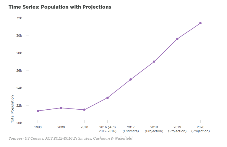 The downtown residential population has increased substantially during the past decade. (Chart from Downtown Council).
